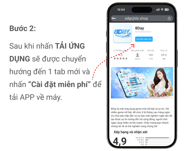 Buóc 4: Hoàn t?t cài ??t ?ng d?ng 8day và ??ng nh?p vào App ?? t?n h??ng trò ch?i c?a b?n